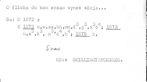 //// O flicka du som ensam synes sörja..• - I //// t //// i //// •Se: N 1872 a //// 3 3 3 4 //// E 1872 u,v,aa,hh,mm,f°,g°,x c ; 1873 [ //// 3,3 3.4 4 ~ " //// u,a »k , m c ,h '; 1875 h, //// ¦ i //// KB: s SKILLINGTHYCKSRBG. 1 //// ¦ //// I ////