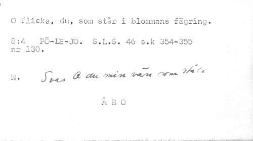 //// O flicka, du, som står i blommans fägring. //// 8:4 FÖ-LE-JO. S.L.S. 46 s.k 354-355 nr 130-. //// i-.t. & ^ W^w. I^t/H or»*- //// å b o ////