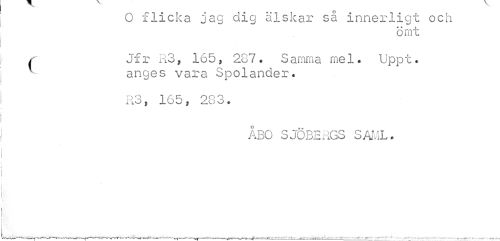 //// O flicka jag dig älskar sa innerligt och //// ömt //// / Jfr R3, 165, 287. Samma mel. Uppt. //// anges vara Spolander. //// R3, 165, 283. //// ÅBO SJÖBERGS SAML. //// -V»- _---.-r-r-.^^-,-^-*---¦ ¦ r» ¦ -_..---~ < . _'___ ////