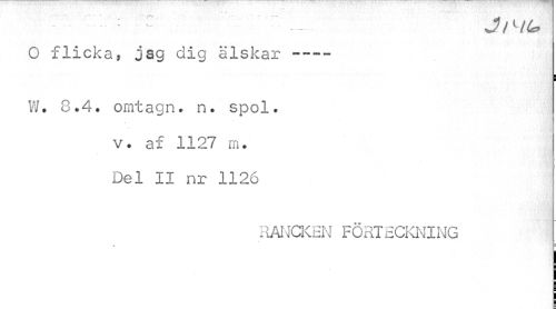 //// O flicka, jag dig älskar --- //// \ //// W. 8.4. omtagn. n. spol. //// v. af 1127 m. Del II nr 1126 //// RANCKEN FÖRTECKNING ////