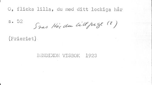 //// O, flicka lilla, du med ditt lockiga hår //// 8-52 av< ) //// (Frieriet) //// bendixon visbok 1923 //// v //// \ ////