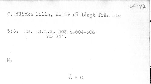 //// oj- I V //// O, flicka lilla, du är så långt från mig //// i //// 5:3. .Q. S.L.S. 508 s.604-606 //// nr 244. //// r //// N. • //// ÅBO ////