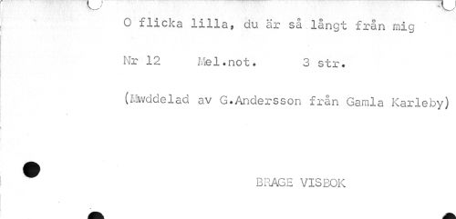 //// O flicka lilla, du är så långt från mig //// Nr 12 Mel.not. 3 str. //// (Mwddelad av G.Andersson från Gamla Karleby) //// BRAGE VISBOK //// rf ////
