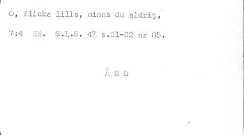 //// O, flicka lilla, minns du aldrig, 7:4 E£. S.L.S. 47 s.81-82 nr 85. //// ÅBO //// A //// } ////