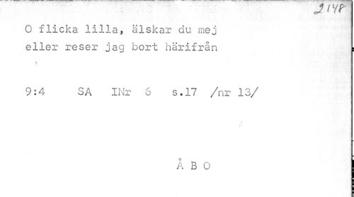//// « /» : //// O flick cl Il Ila, älskar du mel //// eller reser jag bort härifrån : //// * 1 i //// 9:4 SA INr 6 s.17 /nr 13/ //// i //// O I //// A B 0 I ////