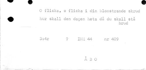 //// O flicka, o flicka i din blomstrande skrud //// hur skall den dagen heta då du skall stå //// brud //// 3:4r ? INH 44 nr 409 //// ÅBO ////