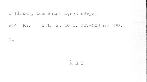 //// O flicka, som ensam synes sörja, //// 9:4 PA. S.L S. 16 s. 207-209 nr 129. j //// N. ! //// k B O ////
