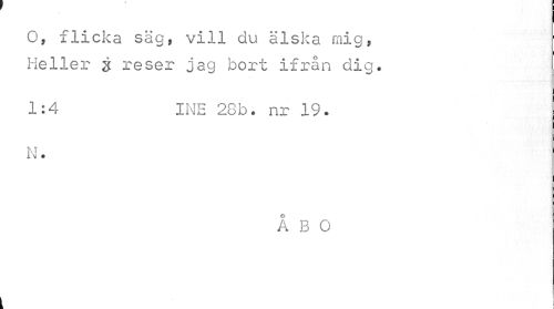 //// O, flicka säg, vill du älska mig, ' //// Heller t reser jag bort ifrån dig. //// 1:4 INE 28b. nr 19. //// i Ni . //// ÅBO //// j //// i i ////