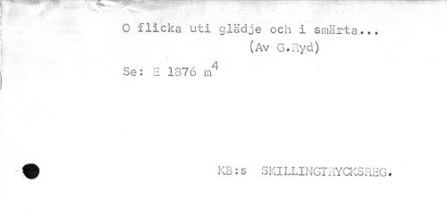 //// O flicka uti glädje och i smärta... //// (Av G.Ryd) //// Se: E 1876 m4 % KB:s SKlLLINGTRYCKSREG. ////