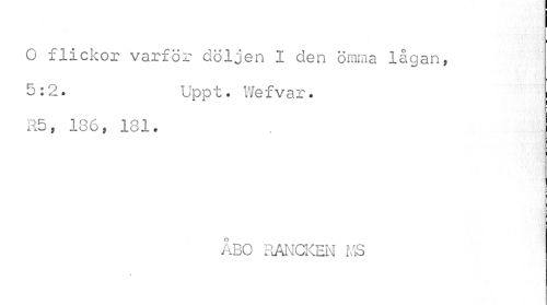 //// O flickor varför döljen I den ömma lågan, 5:2. Uppt. Wefvar. //// R5, 136, 181. //// ÅBO RANCKEN MS ////