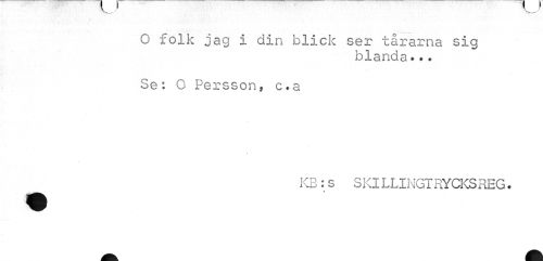 //// O folk jag i din blick ser tårarna sig //// blanda... //// Set 0 Persson, c.a //// KB:s SKlLLINGTRYCKSREG. ////