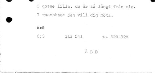 //// O gosse lilla, du är så långt från mig. ^^ 1 rosenhage jag vill dig möta. //// Éxi //// 6:3 SLS 541 s. 825-326 //// Åbo //// * ////