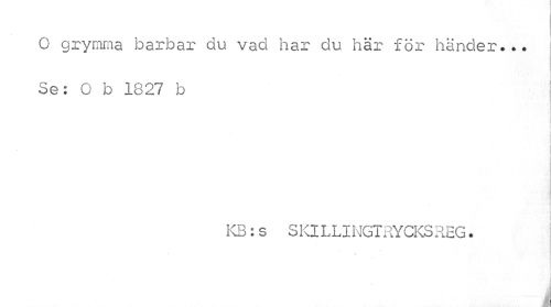 //// O grymma barbar du vad har du här för händer».. Se: O b 1827 b //// å //// KB: s S Kl L LI NGT RYCKS REG. //// i ////