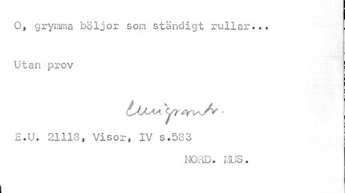 //// ! II //// O, grymma böljor som ständigt rullar... , //// Utan prov //// i //// E.U. 21118, Visor, IV s.583 //// NORD. MUS. //// i ////