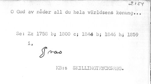 //// OC # | //// 0 Gud av nåder all du hela världsens konung... //// Se: Zz 1758 b; 1800 c; 1844 b; 1846 h; 1859 i j //// KB:s SKILLINGTRYCKSREG. I //// i ////