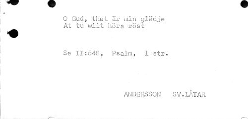 //// 9 //// O Gud, thet är min glädje At tu wilt höra röst //// Se 11:648, Psalm, 1 str. //// ANDERSSON SV.LÅTAR ////