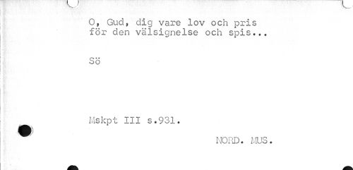 //// O, Gud, dig vare lov och pris för den välsignelse och spis... //// Sö //// Mskpt III s.931. ® NORD. MUS. ////