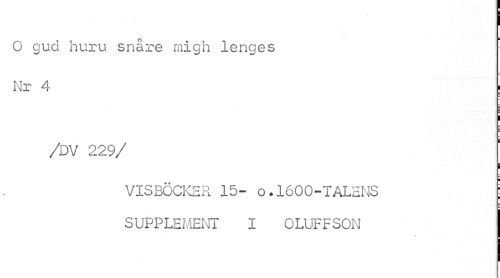 //// O gud huru snåre rnigh lenaes Nr 4 //// /DV 229/ //// VISBÖCKER 15- O.1600-TALENS j //// 2 //// SUPPLEANT I OLUFFSON //// t J ////