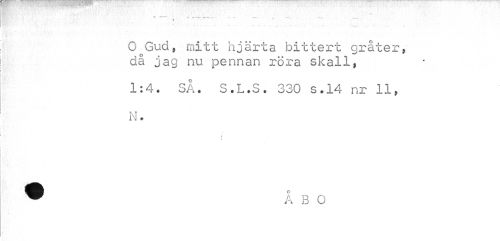 //// »«—^ -a »-v^- f ¦»¦" v T - - —— , • //// 1 • } ' //// ... % //// O Gud, mitt hjärta bittert gråter, då jag nu pennan röra skall, //// 1:4. SÅ. S.L.S. 330 s.14 nr 11, N. //// i i ////