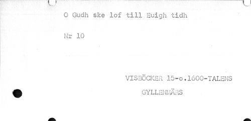 //// O Gudh ske lof till Euigh tidh Nr 10 //// VISBÖCKER 15-o.1600-TALENS ^ GYLLENMÄRS ////