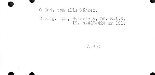 //// O Gud, som alla känner, //// 2:oreg. MJ, Nykarleby, OR. S.L.S. //// 19. s.423-424 nr 161. //// ÅBO //// fl fl i fl fl ^k ////