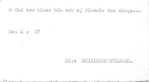 //// O Gud som hörer bön och ej försmår den ringa... //// Se: Z a 27 //// t //// KB:s SKlLLINGTRYCKSREG. //// ¦__- _ ___ __.___^ . .. ___. ...w...U .4. ... . _ ., ...__»-""^.-^w-si-s**" ////
