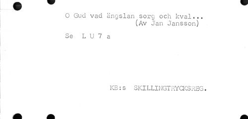 //// O Gud vad ängslan sorg och kval... //// (Av Jan Jansson) //// Se L U 7 a //// KB: s S Kl L LI NGT RYCKS REG. ////