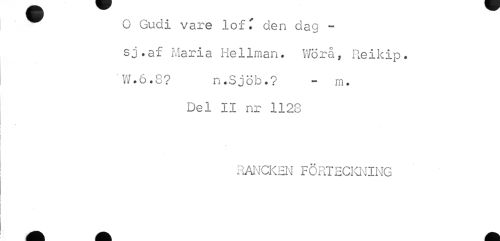 //// ® O Gudi vare lof T den dag - //// sj.af Maria Hellman. Vförå, Reikip. W.6.8? n.Sjöb.? - m. //// Del II nr 1128 //// RANCKEN FÖRTECKNING ////