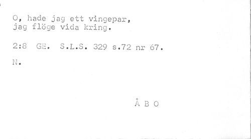 //// O, hade jag ett vingepar, jag flöge vida kring. //// 2:8 GE. S.L.S. 329 s.72 nr 67. N. //// ÅBO ////