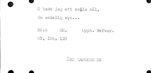 //// O hade jag ett endjla mål, En andelig syn... //// 30:6 GK. Uppt. Wefvar. //// R5, 186, 120 //// ÅBO RANCKEN MS ////
