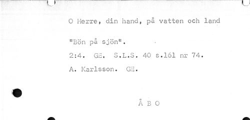 //// O Herre, din hand, pa vatten och land //// flBön på sjön". //// 2:4. GH. S.L.S. 40 s.161 nr 74. A. Karlsson. GE. //// ÅBO ////