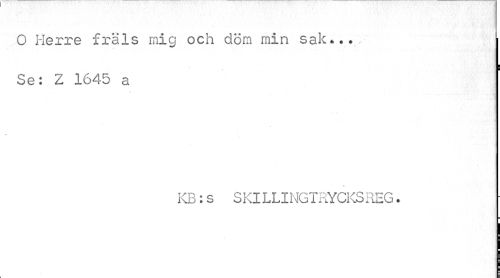 //// O Herre fräls mig och döm min sak... Se: Z 1645 a //// KB:s SKlLLINGTRYCKS REG. ////