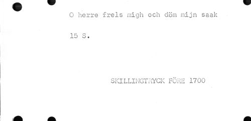 //// O herre frels rnigh och döm mijn saak 15 S. //// S KlLLINGTRYCK FÖRE 1700 ////
