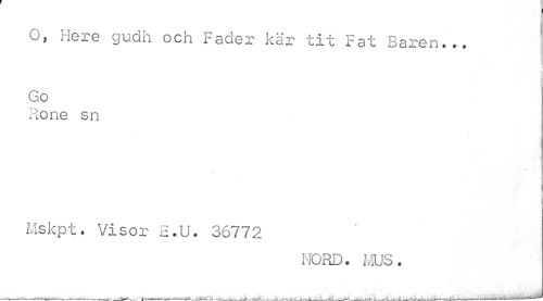 //// o, Here gudh och Fader kär tit Fat Baren... //// i //// Go //// Rone sn //// Mskpt. Visor E.U. 36772 //// NORD. MUS. //// ...i"---.-w---.— - ¦ ---k---___— ___---,---? ---.--- ////