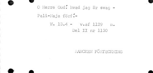 //// h 1 //// V //// O Herre Gud T hvad jag är svag -Pali-Maja förfT- //// W. 13.4 - v.af 1129 m. //// Del II nr 1130 //// RANCKEN FÖRTECKNING ////