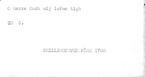 //// ¦ //// O Herre Gudh wij lofvve tigh 20 S. //// SKlLLINGTRYCK FÖRE 1700 //// / <i ////