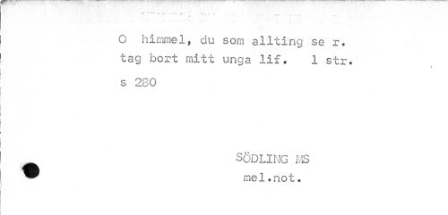 //// O himmel, du som allting se r. tag bort mitt unga //// 111 * 1 str. //// s 280 //// SÖDLING MS //// mel.not. ////