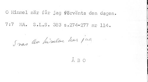//// I ¦ //// O Himmel när får jag förvänta den dagen. //// 7:7 NA. S.L.S. 383 s.274-277 nr 114. j //// i ¦ //// i i //// Å 3 0 ////