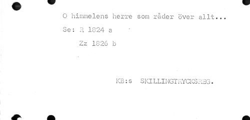 //// O himmelens herre som råder över allt... Se: R 1824 a Zz 1826 b //// i //// KB:s SKILLINGTRYCKSREG. ////