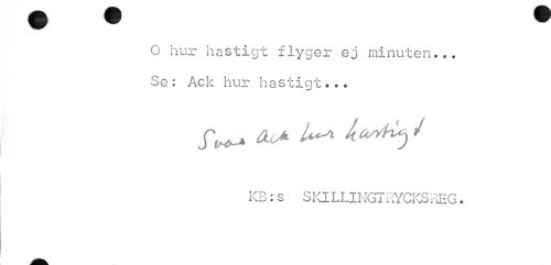 //// O hur hastigt flyger ej minuten... Se: Ack hur hastigt. .. //// f^ dcA U^ h^t^J //// KB: s S Kl L LI NGT RYCKS RE G. ////