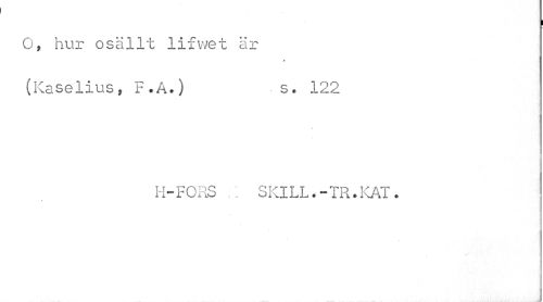 //// , //// O, hur osä11t lifwet är //// * //// (Kaselius, F.A.) s. 122 //// H-FORS SKILL. - TR. KAT . ////