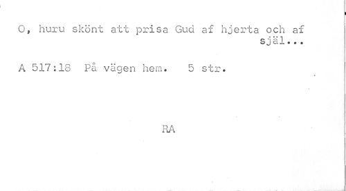 //// , //// O, huru skönt att prisa Gud af hjerta och af //// S J cl i. • # • //// A 517:18 På vägen hem. 5 str. //// RA ////