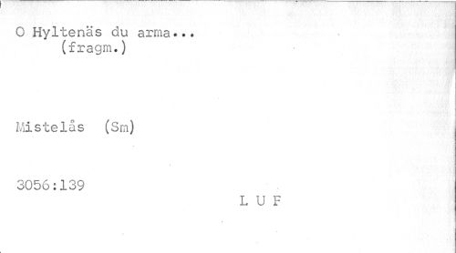 //// O Hyltenäs du arma... //// (fragm.) //// Mistelus (Sm) 3056:139 //// L U F ////