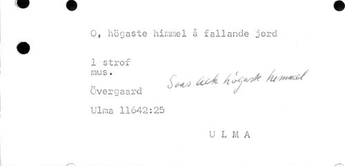//// O, högaste himmel å fallande jord 1 strof //// Overgaard </ //// Ulma 11642:25 //// U L M A ////