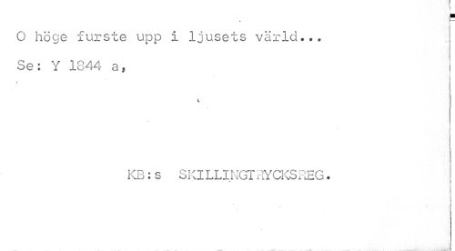 //// ¦ //// p //// O höge furste upp i ljusets värld... Se: Y 1844 a, //// \ //// / //// <s //// i //// i //// KB:s SKILLINGT RYCKSREG. //// i ////