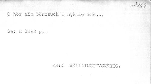 //// O hör min bönesuck I nyktre män... Se: E 1892 p, • //// \ //// KB: s SKILLINGTRYCKSREG. ////