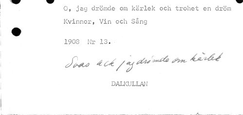//// O, jag drömcle orn kärlek och trohet en dröm Kvinnor, Vin och Sång //// 1908 Nr 13. //// JU* //// dalkullan ////
