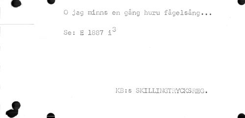 //// O jag minns en gång huru fågelsång... Se: E 1887 i3 //// KB:s SKILLINGTRYCKSREG. ////