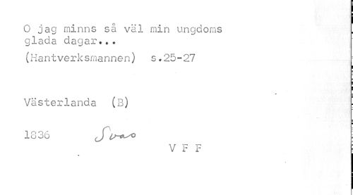 //// O jag minns så väl min ungdoms glada dagar... //// (Hantverksmannen) s.25-27 //// ! //// — //// Västerlanda (B) = //// ¦ //// 1836 J o-c^o //// V F F I ////