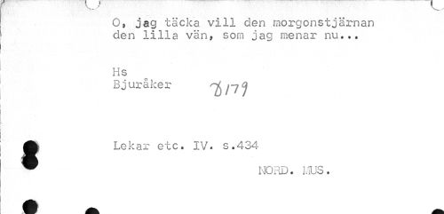 //// Ot jag täcka vill den morgonstjärnan den lilla vän, som jag menar nu... //// Hs //// Bjuråker //// Lekar etc. IV. s.434 //// NORD. MUS. ////